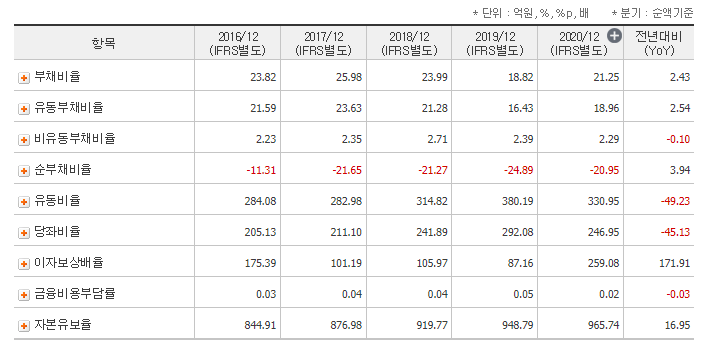 작년 삼원강재의 유동비율과 부채비율은 330.95%. 21.25%입니다. 부채 상환에 대해서는 걱정할 필요가 없겠군요.