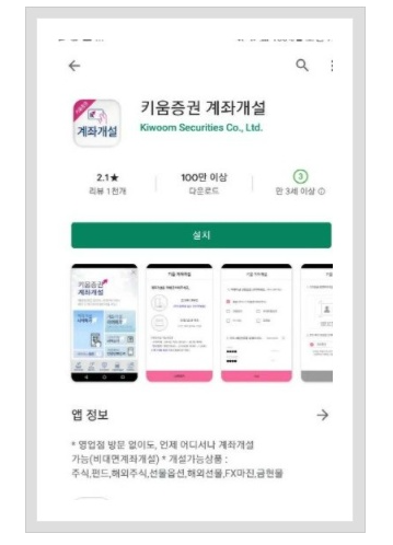 STEP 1. 플레이스토어 App을 통해 키움 증권 어플리케이션을 다운로드 받습니다.
